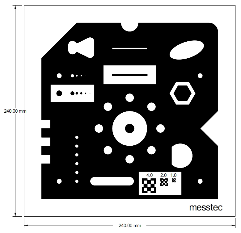 Mit diesem Prüfkörper können wir für die unterschiedlichsten Messaufgaben unter realen Bedingungen die prüfmerkmalbezogene Messunsicherheit und damit auch die Prüfprozesseignung ermitteln. Die Kalibrationsplatte messtec ermöglicht die Ermittlung der Messunsicherheit für nahezu alle in der optischen Fertigungsmesstechnik vorkommenden Mass-, Form- und Lageabweichungen.
